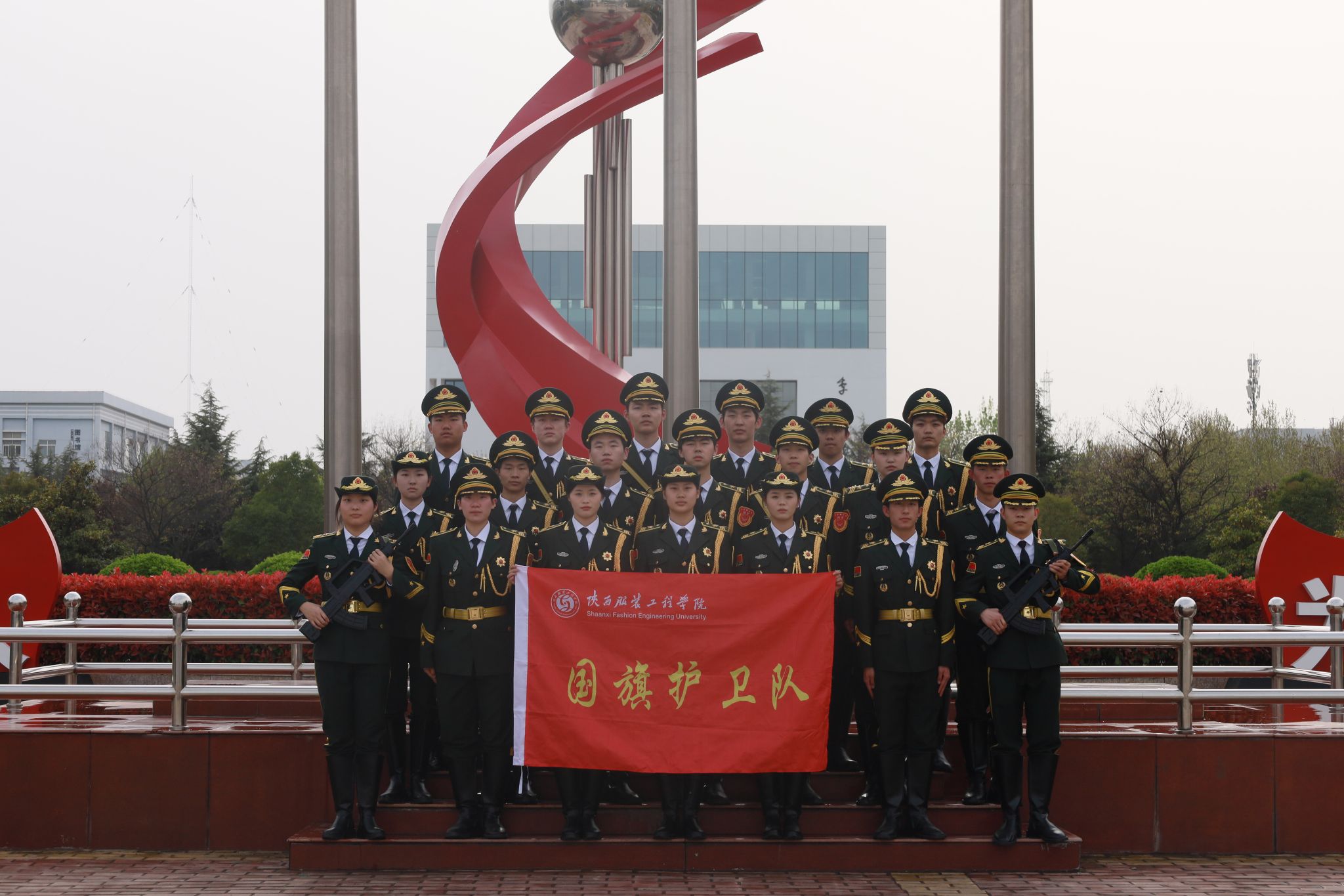 陕西服装工程学院国旗护卫队成立于2006年5月24日,国旗护卫队是一支半军事化的组织,是我校各项学生活动的一面旗帜。陕西服装工程学院国旗护卫队主要担任国旗仪仗、活动礼兵、国防教育、维稳执勤、应急响应。必须以严格的标准要求自己,增强自我管理能力,养成良好行为习惯,提高文明素质,成为有理想、有道德、有文化、有纪律的合格队员。