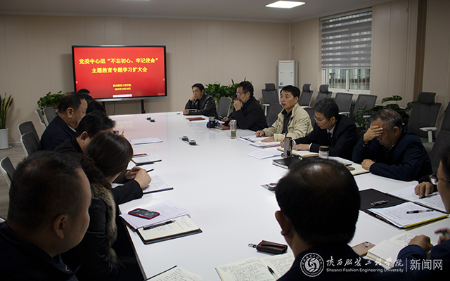陕服新闻网讯(记者团董子豪)10月15日下午,党委中心组在行政楼一楼第三会议室举行“不忘初心、牢记使命”主题教育专题学习扩大会。党委书记胡鸿晓、执行校长姜寿山,副校长温小郑、工会主席刘明夫等党委中心组成员,各党总支、直属支部书记,党委部门负责人,思政部主任参加。胡鸿晓主持。