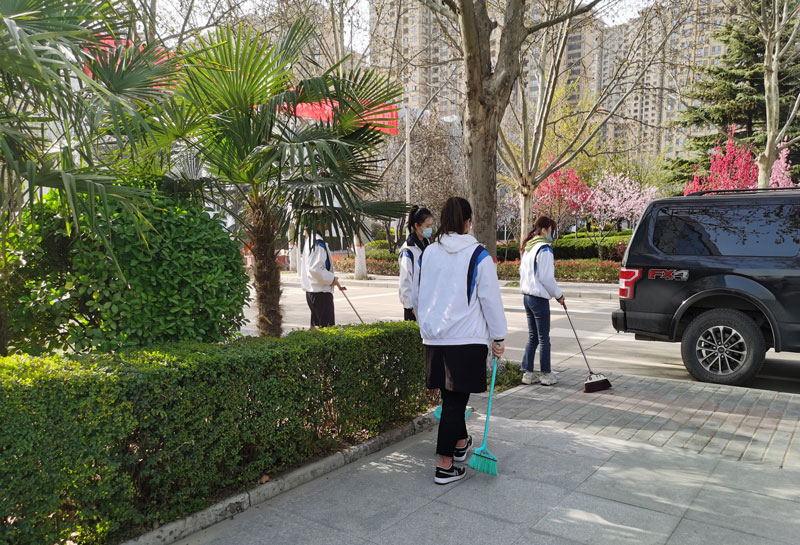 在志愿服务活动过程中,我院团学干部志愿者带着扫帚、抹布、铁锨等劳动工具,对校园的公共场所、卫生死角,及行政楼、国学院进行了清洁打扫。同学们热情高涨,清扫地面、擦拭门窗、捡塑料袋、矿泉水瓶,不怕累、不怕脏,经过一下午的劳动,校内环境焕然一新,与春意盎然的校园形成独居一格的美丽风景线。