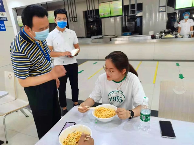 副校长李宗领检查了东门入校接待、缴费注册和餐厅工作,对学生接待工作、餐厅工作作了指导、提出了更高要求。李校长与学生家长热情交谈,耐心解答家长关心的问题。在餐厅,李校长与多名就餐学生和家长交流,征求家长和学生对学校接待工作和餐厅工作的意见,家长和学生都表示满意。李校长向学生家长承诺,陕服就是学生第二个家,学生就是我们的孩子,我们会像自己孩子一样对待学生,请家长放心。