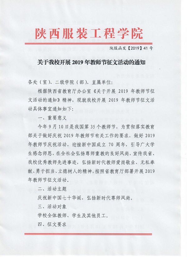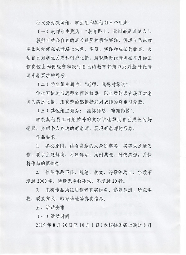 关于我校开展2019年教师节征文活动的通知