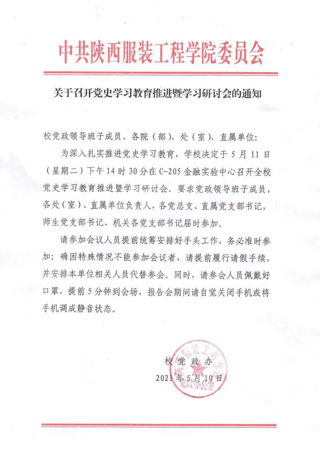 关于召开党史学习教育推进暨学习研讨会的通知