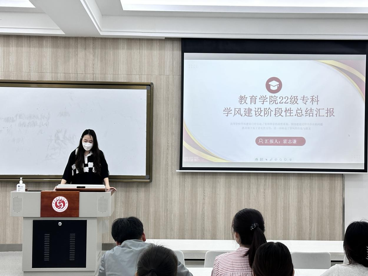 22级专科从学风建设指导思想、学风建设活动情况、课堂建设的关键、学风建设总结这四个方面展开陈述,并表示高等学校学风建设已经引起了党和国家的高度重视,虽学风建设月已结束,但22级专科辅导员对未来有着明确的规划,应完善学风建设体系,强化监督管理等。