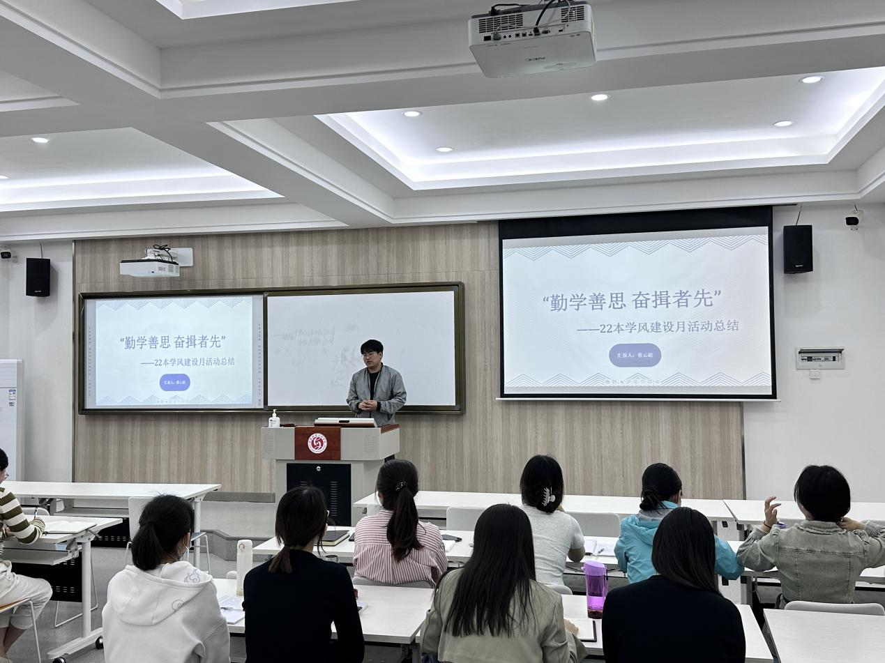 22级本科从以思想为引领,优化学风建设班级管理、以活动为载体,丰富学风建设开展形式、以骨干为先锋,充分发挥朋辈榜样作用、展望总结这四个方面展开,其中ppt制作大赛和词语大战、单词接龙等活动成为亮点。