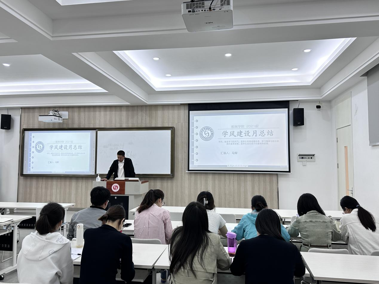 (教育学院新闻网讯 崔静)在开展主题教育期间,教育学院为认真学习贯彻党的二十大和全国“两会”精神,落实立德树人根本任务,进一步加强学风建设,督促学生端正学习态度营造严谨勤奋、创先争优的学习氛围,促进学风建设提质增效和学校高质量发展,自4月份以来,开展了以“勤学善思 奋揖者先”为主题的学风建设月系列活动,为此于5月12日在B209组织开展学风建设月阶段性工作总结汇报,教育学院学工办主任葛林艳老师及全体辅导员参加本次会议。