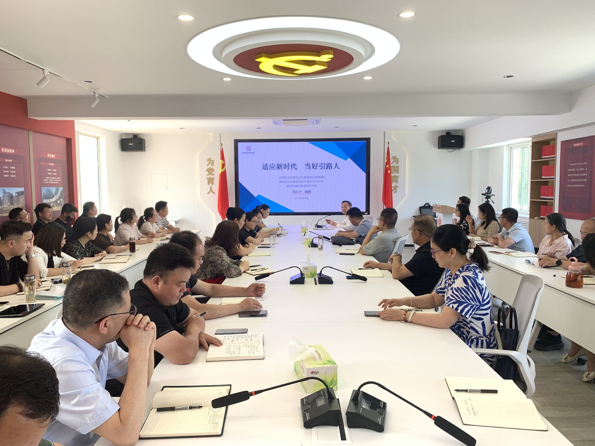 陕服新闻网讯(李文斌)5月28日下午,学校邀请中国民办教育协会党建理事会副理事长、陕西省民办教育协会党建专委会主任闵小平教授,紧紧围绕如何做好民办高校党建工作这一时代主题,在行政中心326会议室作《适应新时代 当好引路人》的专题报告,校长姜寿山主持报告会。全校处科级干部、各二级学院党委、党总支书记、副书记,各教工支部书记,各直属党支部书记、副书记、党委工作部门工作人员等60余人参加报告会。