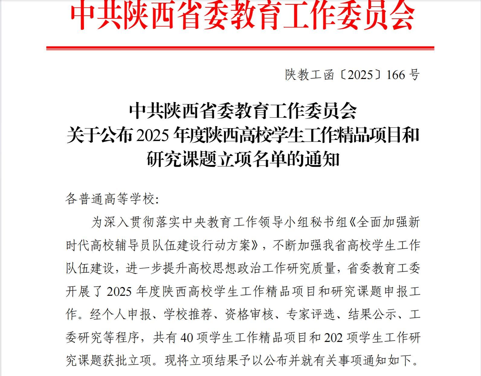 陕服新闻网讯(校团委)近日,陕西省委教育工委公布了2025年度陕西高校学生工作精品项目和研究课题立项名单,我校获批立项1项精品项目、2项研究课题。