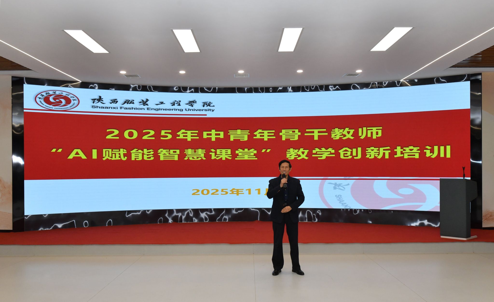 陕服新闻网讯(王艳)为响应国家教育数字化战略,推动我校教学创新,提升教师运用AI技术优化课堂教学的能力,11月8日至9日,教师发展中心在E2-4报告厅组织开展“AI赋能智慧课堂”专项培训,60余名中青年骨干教师积极参训。西安电子科技大学尚荣华教授、我校副校长潘庆才及相关处室负责人出席开班仪式,仪式由教师发展中心主任王军主持。